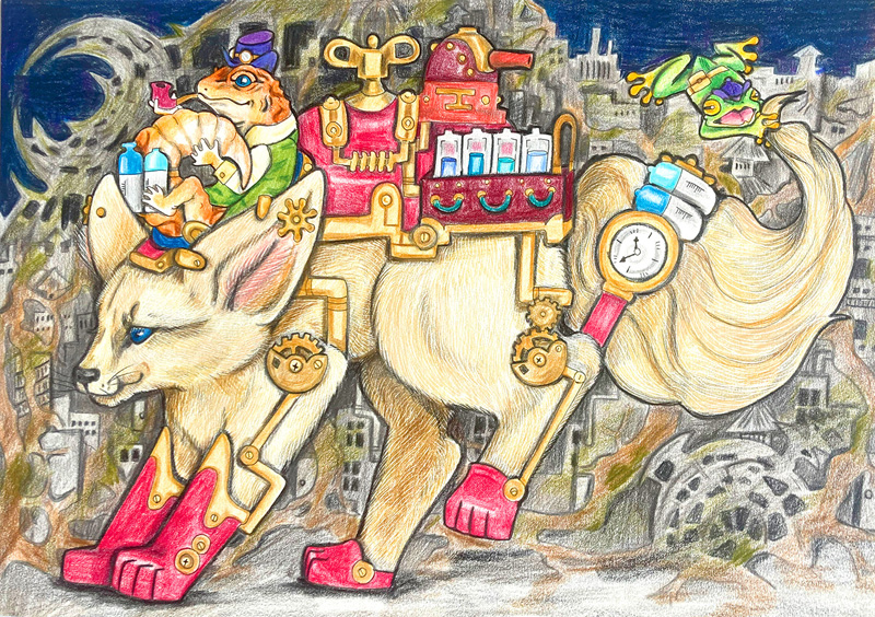 福祉、医療の方々などたくさんの人に支えられて絵を描いています。特に生活から創作まで支えてくれている母に感謝する日々です。また、私の絵を観てくださる方々、本当にありがとうございます。これからも、がんばります。